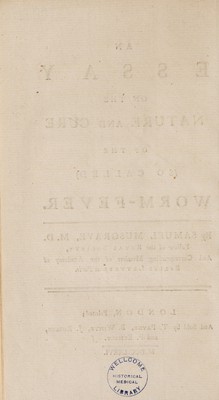 Credit: An essay on the nature and cure of the (so called) worm-fever / [Samuel Musgrave]. Source: Wellcome Collection.
