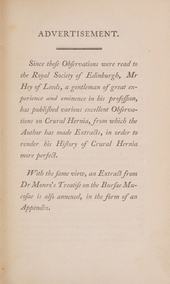 Observations on crural hernia: to which is prefixed, a general account of the other varieties of hernia. Illustrated by engravings / By Alexander Monro.