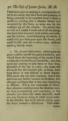An account of some new experiments and observations on Joanna Stephen's medicine for the stone. With some hints for reducing it from an empirical to a rational use. With remarks on Dr. Hale's experiments on the same subject; and some additional experiments on the comparative efficacy of dulcified spirit of nitre, spirit of salt, and the juices and decoctions of onions, leeks and cellery, as lithontripticks. Presented to the Royal Society Jan. 14. 1741-2 ... To which is subjoined, An account of the effects of soap-lees taken internally, in the case of James Jurin, M. D. [by himself] / [John Rutty].