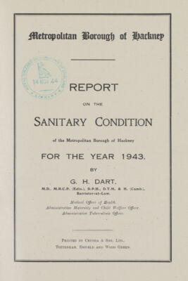 [Report of the Medical Officer of Health for Hackney].