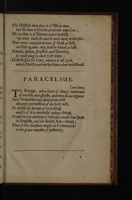 Credit: Philosophy reformed and improved in four profound tractates. The I discovering the great and deep mysteries of nature: by that learned chymist & physitian Osw: Crollius. The other III discovering the wonderfull mysteries of the creation by Paracelsus: being his Philosophy to the Athenians / Both made English by H. Pinnell. For the increase of learning and true knowledge. Source: Wellcome Collection.