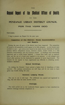 [Report 1900] / Medical Officer of Health, Penzance U.D.C. / Borough.