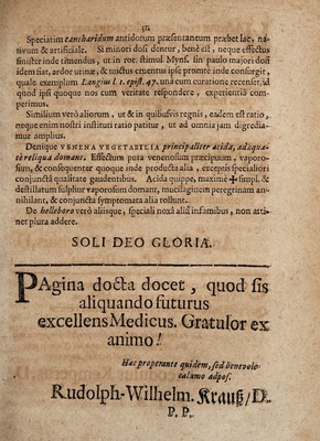 Credit: Dissertatio medica de venenis & bezoardicis / [Johann Christian Ursin]. Source: Wellcome Collection.