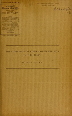 The elimination of ether and its relation to the kidney / by George B. Wood.
