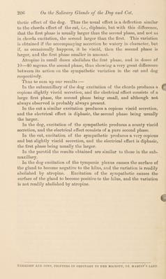 The electrical phenomena accompanying the process of secretion in the salivary glands of the dog and cat / by W. Maddock Bayliss and J. Rose Bradford ; communicated by E.A. Schäfer.