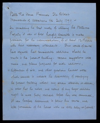 Credit: Memoranda of Alterations etc to Belle Vue House Premises. Source: Wellcome Collection.