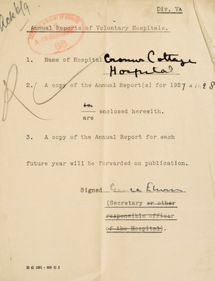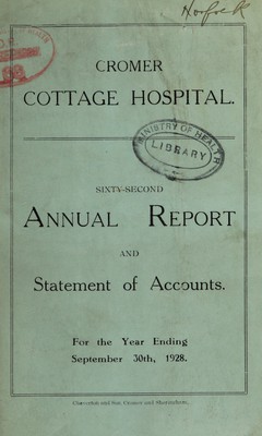 Credit: Annual report and statement of accounts : 1928 / Cromer Cottage Hospital. Source: Wellcome Collection.