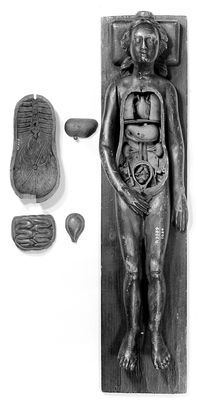 Credit: M0018672EB: Pregnant female anatomical figure in wood. Source: Wellcome Collection.