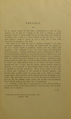 Credit: A short manual of analytical chemistry : qualitative and quantitative inorganic and organic arranged on the principle of the course of instruction given at the South London Central Public Laboratory and the South London School of Pharmacy / by John Muter. Source: Wellcome Collection.