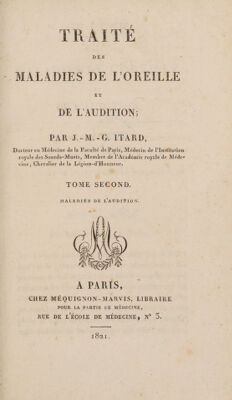 Traité des maladies de l'oreille et de l'audition / par J.-M.-G. Itard.