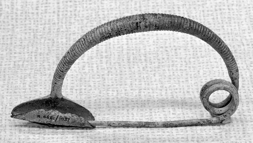 Credit: M0019323: Two Iron Age bronze fibulae: bowtype and a looped type. Source: Wellcome Collection.