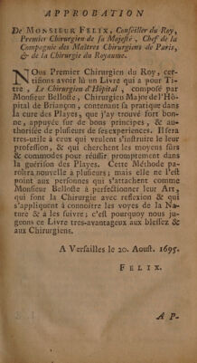 Le chirurgien d'hôpital, enseignant une maniere douce et facile de guerir promptement toutes sortes de playes. Avec un moyen d'éviter l'exfoliation des os, et une plaque nouvellement inventée pour le pansement des trépans / [Augustin Belloste].