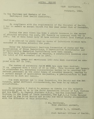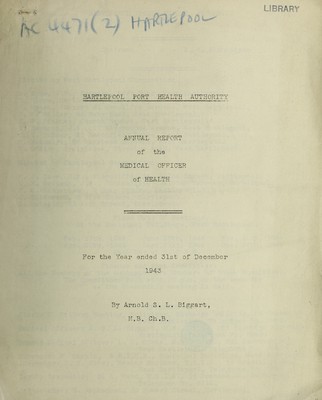 [Report 1943] / Medical Officer of Health, Hartlepool Port Health Authority.