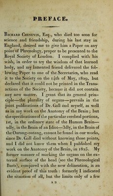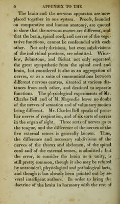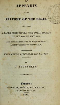 Appendix to The anatomy of the brain : containing a paper read before the Royal Society on the 14th of May, 1829, and some remarks on Mr. Charles Bell's animadversions on phrenology / by G. Spurzheim.