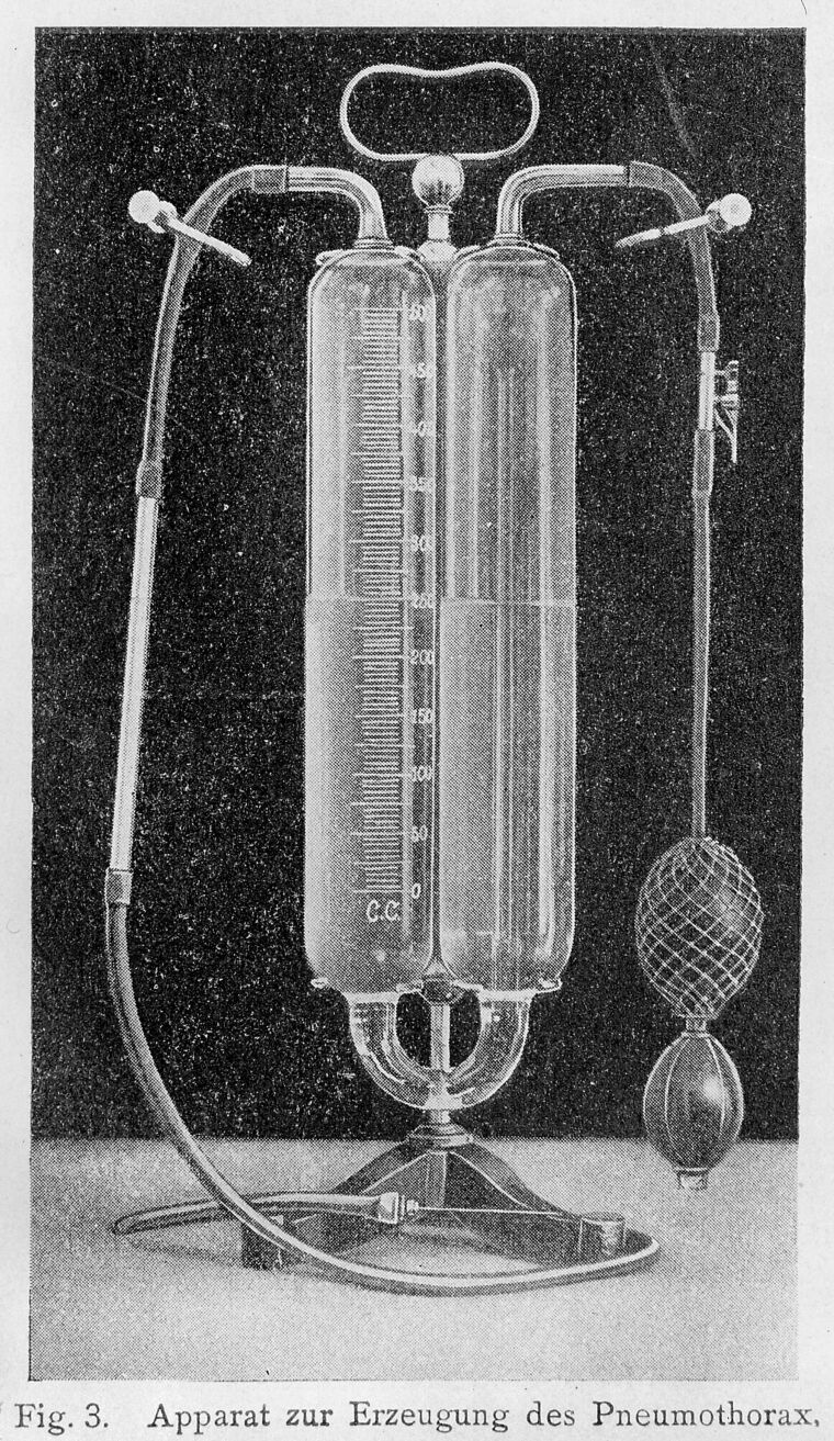 M0013463: Illustration of apparatus used by Carlo Forlanini for artificial pneumothorax. In copyright. Source: Wellcome Collection.