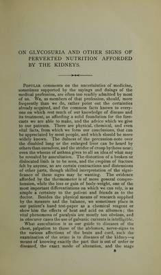On glycosuria and the renal signs of perverted nutrition : with the treatment of diabetes and of some conditions allied to glycosuria / by Willaim Squire.