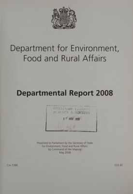 Departmental report : 2008 (Defra) / Department for Environment, Food and Rural Affairs and the Forestry Commission ; presented to Parliament by the Secretary of State for Environment, Food and Rural Affairs.