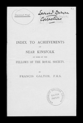 Credit: Correspondence Regarding Corrections for <i>Index to Achievements of Near Kinsfolk of Fellows of the Royal Society</i>. Source: Wellcome Collection.