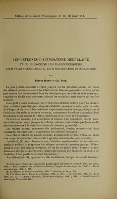 Les réflexes d'automatisme médullaire et le phénomène des raccourcisseurs : leur valeur sémiologique, leur signification physiologique / par Pierre Marie et Ch. Foix.