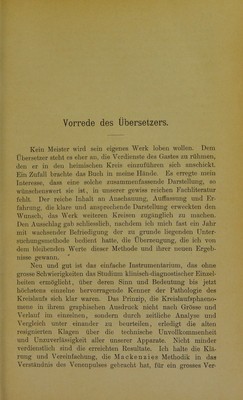 Die Lehre vom Puls : Arterienpuls, Venenpuls, Leberpuls, sichtbare Herzbewegungen / James Mackenzie ; aus dem Englischen mit ausdrücklicher Bewilligung des Verfassers von Adolf Deutsch.