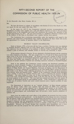 Report of the Commission of Public Health to the Minister of Public Health / Department of Public Health, Victoria.