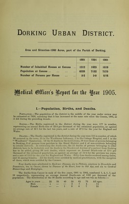 [Report 1905] / Medical Officer of Health, Dorking U.D.C.