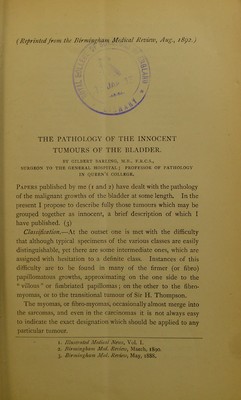The pathology of the innocent tumours of the bladder / by Gilbert Barling.