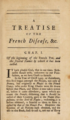Credit: De morbo Gallico. A treatise of the French disease, publish'd above 200 years past / by Sir Ulrich Hutten ... Translated soon after into English by a canon of Marten-Abbye [T. Paynell]. Now again revised and recommended to the press, with a preface to the same, and a letter at the close, to Mr. James Fern, surgeon, concerning a very singular suppos'd infection. By Daniel Turner. Source: Wellcome Collection.