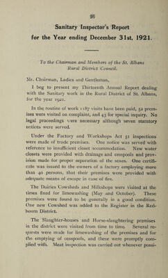 [Report 1921] / Medical Officer of Health, St Albans R.D.C.