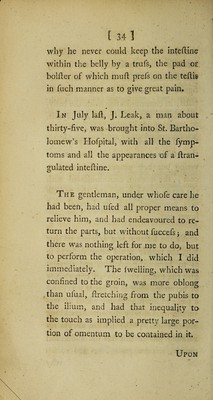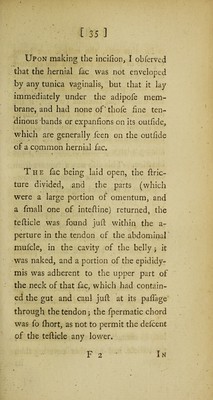 Credit: An account of a particular kind of rupture, frequently attendant upon new-born children; and sometimes met with in adults; viz. that in which the intestine, or omentum, is found in the same cavity, and in contact with the testicle / [Percivall Pott]. Source: Wellcome Collection.