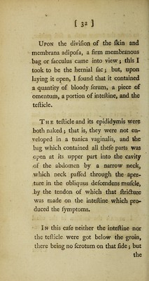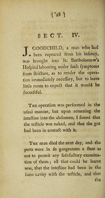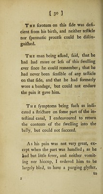 Credit: An account of a particular kind of rupture, frequently attendant upon new-born children; and sometimes met with in adults; viz. that in which the intestine, or omentum, is found in the same cavity, and in contact with the testicle / [Percivall Pott]. Source: Wellcome Collection.