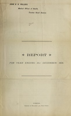 Credit: [Report 1906] / Medical Officer of Health, Tiverton R.D.C. Source: Wellcome Collection.