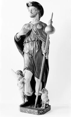 Credit: M0007707: Carved wooden figure of St. Roc. Source: Wellcome Collection.