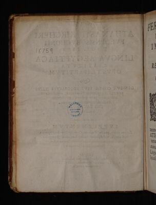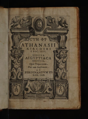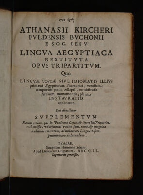 Athanasii Kircheri ... Lingua Aegyptiaca restituta / opus tripartitum. Quo linguæ Coptæ sive idiomatis illius primæui Ægyptiorum pharaonici, vetustate temporum pæne collapsi, ex abstrusis Arabum monumentis, plena instauratio continetur. Cui adnectitur supplementum earum rerum, quæ in Prodromo Copto, et opere hoc tripartito, vel omissa, vel obscurius tradita sunt. Noua, & peregrina eruditione contextum, ad instauratæ linguæ usum, speciminis loco declarandum.