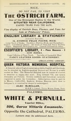 Credit: Mediterranean winter resorts : a complete and practical handbook to the principal health and pleasure resorts on the shores of the Mediterranean ... / [Eustace A. Reynolds-Ball]. Source: Wellcome Collection.