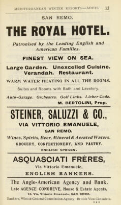 Credit: Mediterranean winter resorts : a complete and practical handbook to the principal health and pleasure resorts on the shores of the Mediterranean ... / [Eustace A. Reynolds-Ball]. Source: Wellcome Collection.