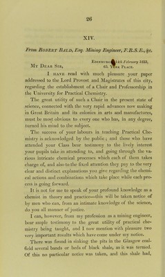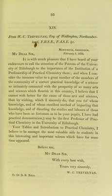 Testimonials regarding Dr D. B. Reid's qualifications as a lecturer on chemistry, and as a teacher of practical chemistry.