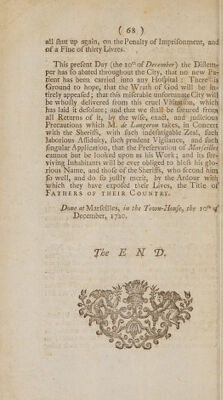 Credit: A brief journal of what passed in the city of Marseilles, while it was afflicted with the plague, in the year 1720 / Extracted from the register of the Council-Chamber of the Town-House, kept by Monsieur Pichatty de Croissainte ... Translated from the original, published at Paris. Source: Wellcome Collection.