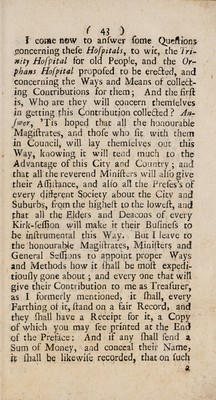 An historical account of the Old People's Hospital, commonly called, the Trinity Hospital in Edinburgh : Also, proposals how to raise a fond [sic] for the maintenance of widows and orphans, under the title of a charity-bank / By Andrew Gairdner.