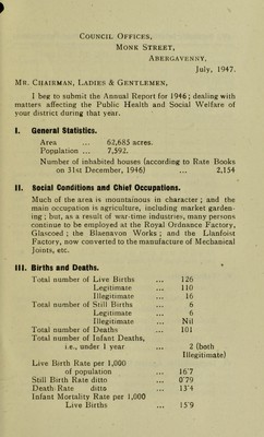 Credit: [Report 1946] / Medical Officer of Health, Abergavenny R.D.C. Source: Wellcome Collection.