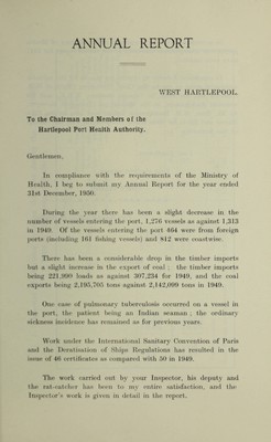 Credit: [Report 1950] / Medical Officer of Health, Hartlepool Port Health Authority. Source: Wellcome Collection.