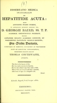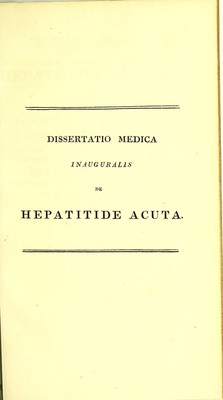 Credit: Dissertatio medica inauguralis de hepatitide acuta ... / eruditorum examini subjicit Thomas Gouthwaite. Source: Wellcome Collection.