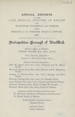 Credit: [Report of the Medical Officer of Health for Woolwich]. Source: Wellcome Collection.