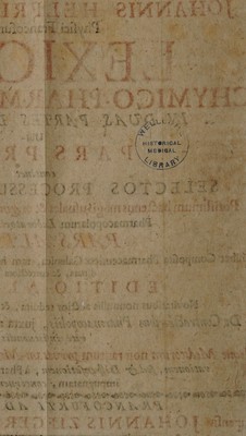 Lexicon chymico-pharmaceuticum, in duas partes distinctum, ubi pars prior continet selectos processus chymicos ... pars altera exhibet composita pharmaceutico galenica, tam hactenus usualia, quàm alia his subordinata, & correctiora dicta / [Johann Helfrich Jüngken].