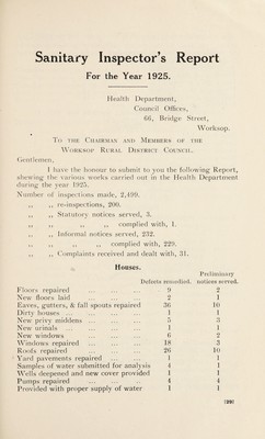 Credit: [Report 1925] / Medical Officer of Health, Worksop R.D.C. Source: Wellcome Collection.