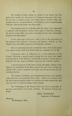 [Report 1909] / Medical Officer of Health, Haydock Local Board / U.D.C.