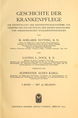 Geschichte der Krankenpflege : er Entwicklung der Krankenpflege- Systeme von Urzeiten bis zur Gründung der ersten englischen und amerikanischen Pflegerinnenschulen / von M. Adelaide Nutting und Lavinia L. Dock ; übersetzt von Schwester Agnes Karll.