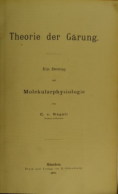 Theorie der Garung : ein Beitrag zur Molekularphysiologie / von C. v. Nageli.