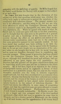 The Contagious Diseases Act : a paper read by Francis Cadell, Esq, F.R.C.S.E., lecturer on syphilology, Edinburgh School of Medicine, before the Medico-Chirurgical Society of Edinburgh, January, 1881, on the hygienic and legislative failure of the acts, with the discussion of the Society.