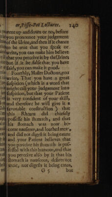 Credit: The pisse-prophet or, certain pisse-pot lectures. Wherein are newly discovered the old fallacies, deceit, and jugling of the piss-pot science, used by all those (whether quacks, and empiricks, or other methodical physicians) who pretend knowledg of diseases, by the urine. In giving judgment of the same / By Tho: Brian, M.P. lately in the city of Lomdon [!], and now in Colchester, in Essex. Never heretofore published by any man in the English tongue. Source: Wellcome Collection.
